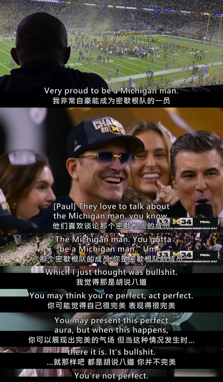 在这部体育类纪录片中,康纳·斯塔利斯首次回应关于密歇根橄榄球队偷拍丑闻的指控