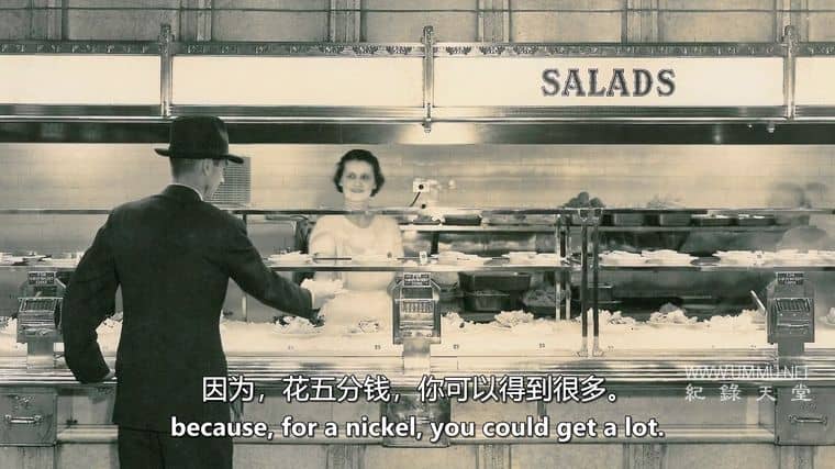介绍了二十世纪大部分时间(1902 - 1991)最具标志性的美国连锁餐厅之一的概况,尽管它只存在于费城和纽约市,但它主要以费城的公司名称Horn + Hardart以及他们在纽约市的餐厅类型而闻名, 即自动机,这个概念源于欧洲不同但有些相似的餐厅。标志性的性质包括以镍增量出售的单份食物的视觉效果,每件物品都显示在玻璃门后面,通过插入所需数量的镍(在早期通常为一两个)购买,允许客户打开所述门取回食品。受访者,包括名人、历史学家以及与 Horn + Hardart 直接或间接相关的人,深情地谈论自动机,他们的记忆可以说是广泛的,这是它成功的原因。