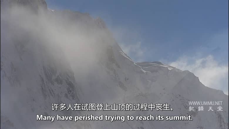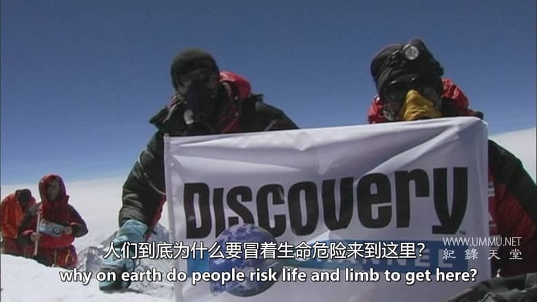 又名:攀越极限;于2004 年3月至6月间拍摄,记录了发现团队在珠穆朗玛峰上的努力,其中包括两名加拿大登山者--制片人兼经验丰富的探险向导本-韦伯斯特(Ben Webster)和他的女友、登山新手兼运动心理学博士候选人肖娜-伯克(Shauna Burke),以及澳大利亚人安德鲁-洛克(Andrew Lock)和墨西哥人赫克托-庞塞-德-莱昂(Hector Ponce De Leon),他们都是珠穆朗玛峰和世界上最令人生畏的山峰的老手。